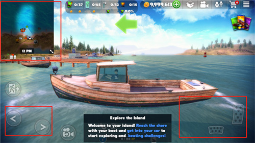 2、玩家首先将出生在一艘船上,通过方向键可以控制船的操作,通过右侧按键可以操作船的加减速;