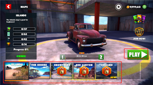 1、进入游戏后,玩家选择一个想要挑战的场景,随后点击画面右下角的play即可开始挑战;