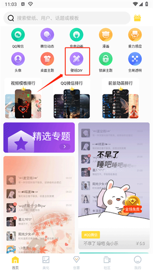 1、打开软件,进入首页,然后点击壁纸DIY功能。