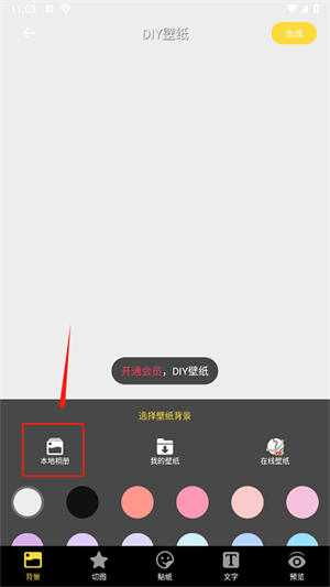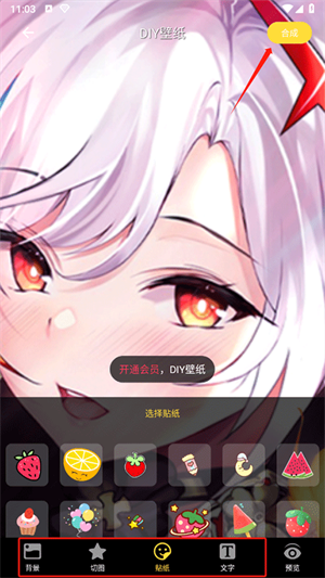 3、最后使用底部工具栏对壁纸进行编辑后,点击右上角合成按钮即可。