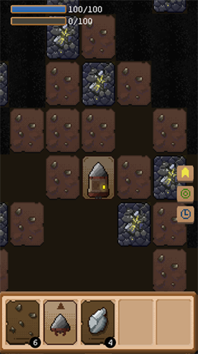 1、游戏采用模拟挖掘主题,玩家在游戏主界面点击进入地心即可开始冒险,需要尝试不断向下进行挖掘,每次挖掘都会有一定能量消耗;
