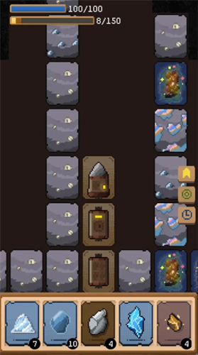 4、点击画面右侧的黄色按钮即可打开制造面板,将对应的组件放入其中即可进行制作,很多岩石对挖掘力有一定要求,需要通过提高挖掘力以完成挑战。