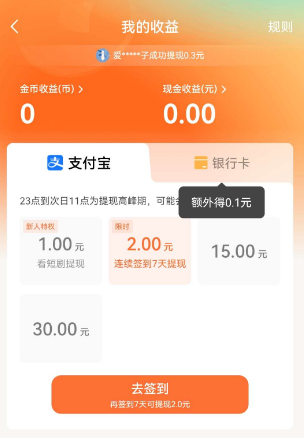 4、将金币按一定比例兑换成现金,然后在上图页面进行提现即可。