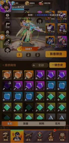1.玩家进入到游戏之后,可以来到角色页面,升级角色,搭配装备。