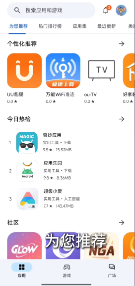 奇妙应用1.2.7是一款包含了超多种资源的应用程序,全网的资源汇聚在软件之后,不管想要什么资源都是可以通过当前软件找到的,最新最流行的应用和游戏资源全部都汇聚在这里,另外软件的版本是最新的版本,其中加入了更多的辅助功能,等待用户前来进行使用,而且在使用的过程中软件还是加入了智能推荐功能。