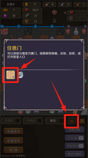 4、获得道具后可以将部分墙变为黄门,或移除特殊墙、冰块、岩浆、或打开密室入口。