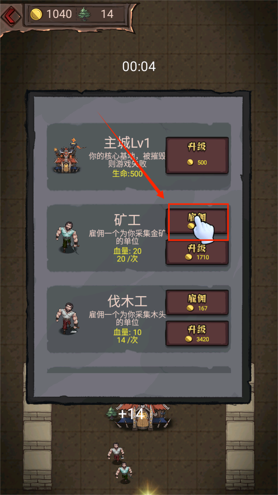 2、还可以在主城内这里雇佣伐木工和矿工,让他们带来打造建筑的资源。