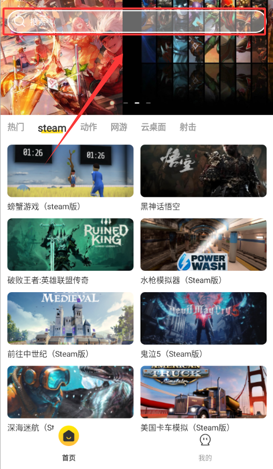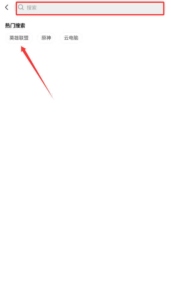 1、进入雷电云电脑app,在顶上点击搜索。