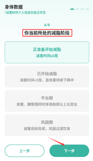 5、根据用户现在处于哪个减脂阶段选择。