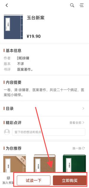 2、找到自己想看的书,点进去可以试读一下或者立即购买。