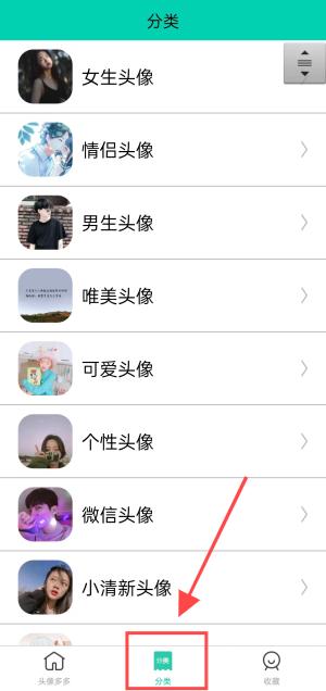 1、基础头像浏览与选择操作流程:进入分类浏览页面后,通过左右滑动方式预览筛选最喜爱的头像素材资源。