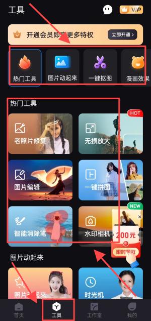 1、专业修图工具组,包含一键抠图、魔法天空替换等实用功能,支持精细化图片编辑调整。