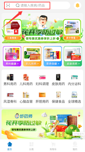 1、打开好药师APP,在界面搜索。