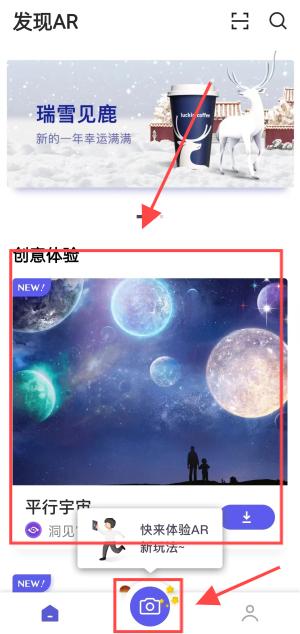2、进入后,点击底部拍照,或者选择一个AI创意体验。