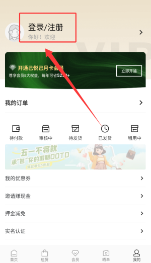 2、点击登录注册。
