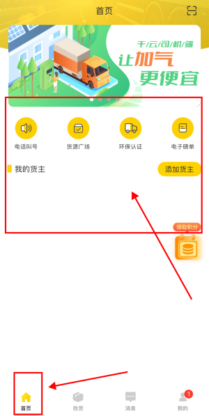 2、在首页中可以查看到电话叫号、货源广场等服务。