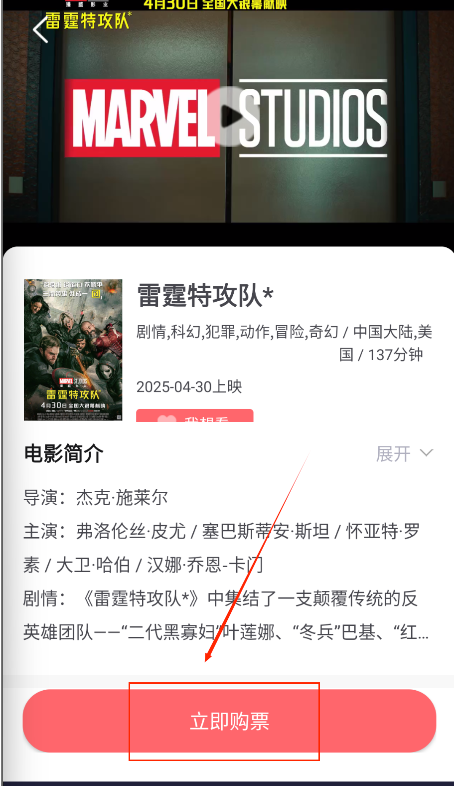 2、浏览影片信息并点击购票。