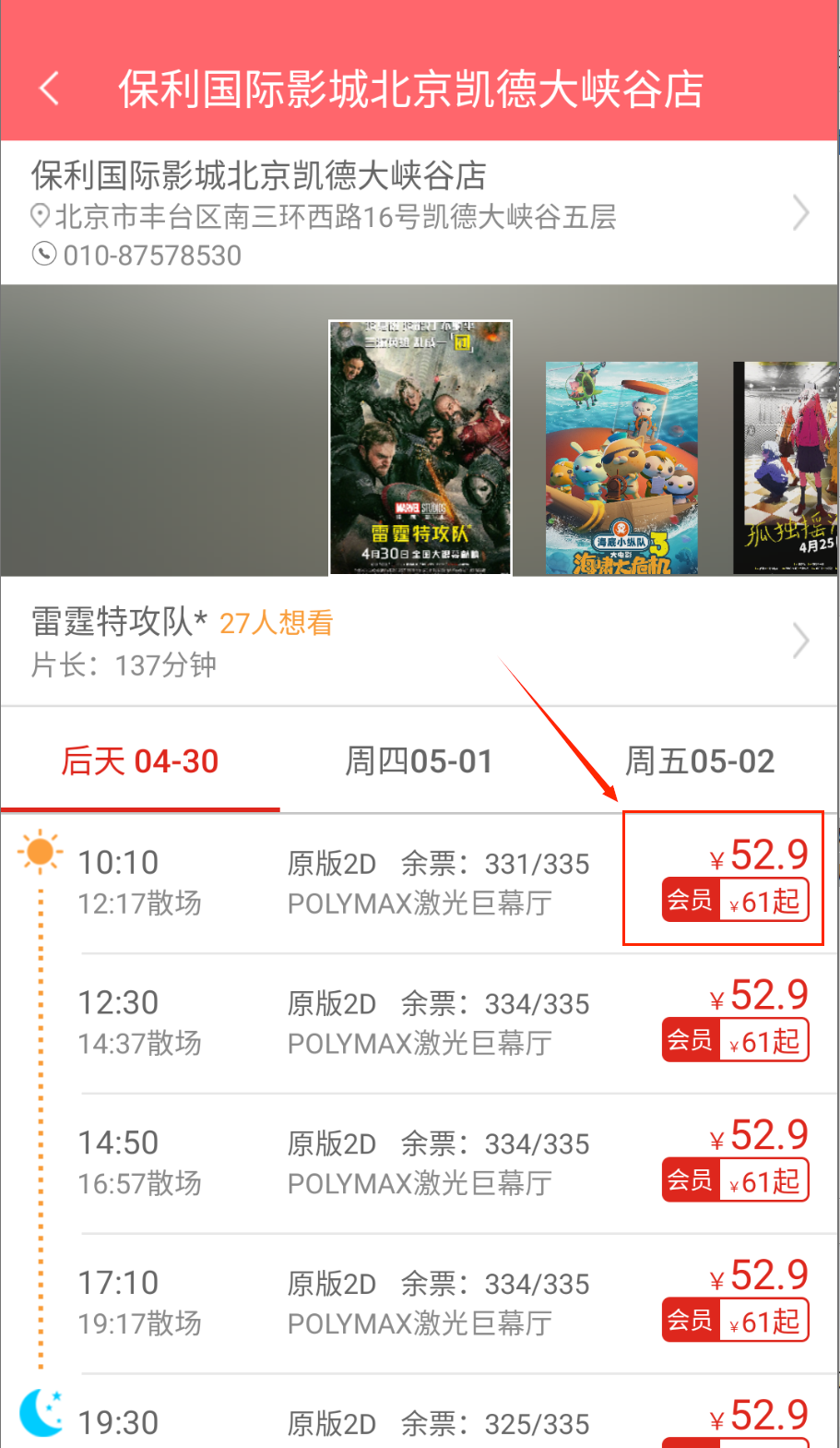 3、挑选合适场次与座位。