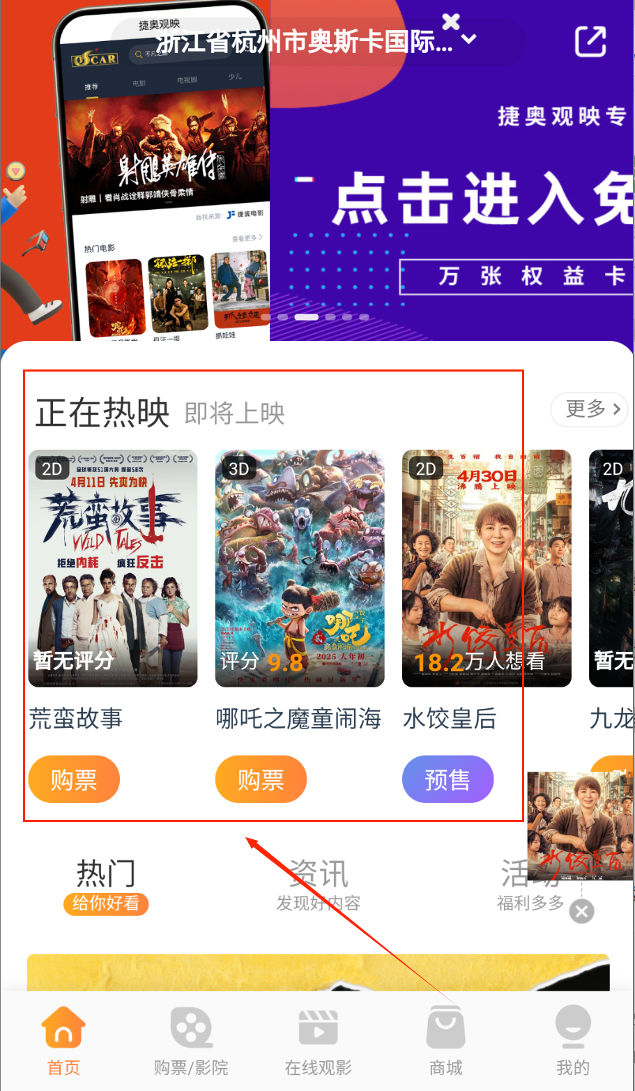 2、动态资讯整合,每日更新影片资讯与高清预告片,搭配真实观众影评系统,帮助用户全面了解影片质量再做购票决策。