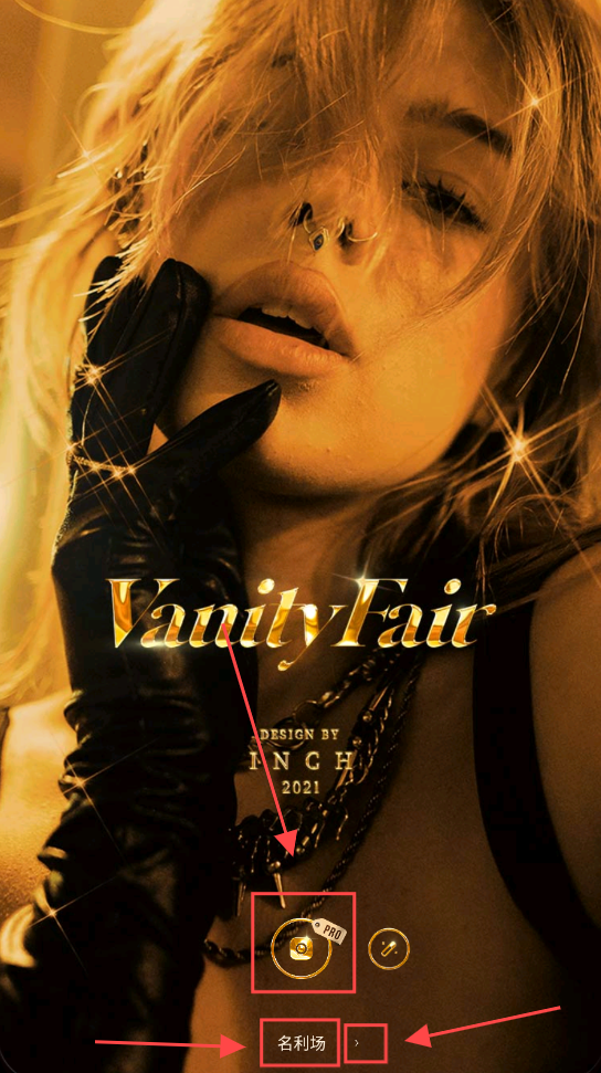 1、打开软件后,可以点击拍照,这是名利场模式,点击右边箭头切换下一个模式。