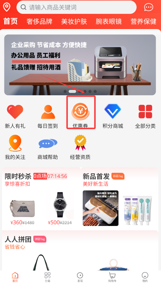 1、注册登录后,点击“优惠券”可以查看自己的优惠福利。