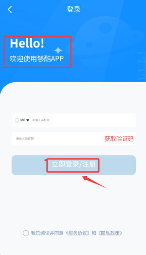 3、输入手机号,获取验证码即可登录。