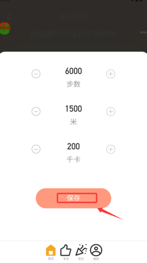 2、目标设定:进入"我的目标"页面,滑动调节期望达成的每日步数值,保存后自动追踪。