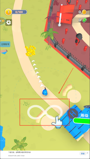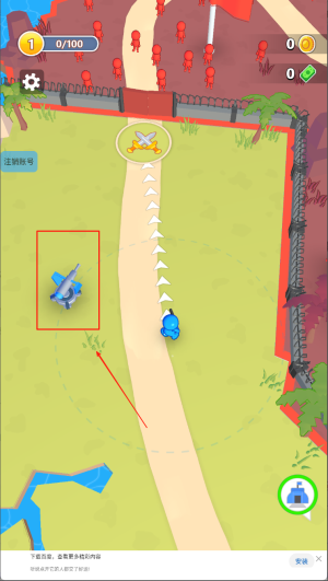 1、划东屏幕操控人物移动,拾取地图上的物资。