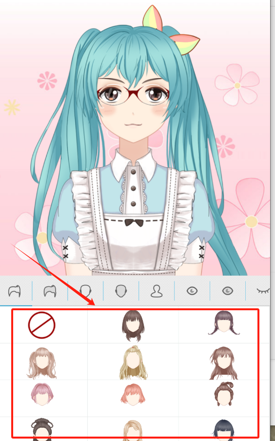 2、选择下端自己喜欢的动漫的脸型和发型。