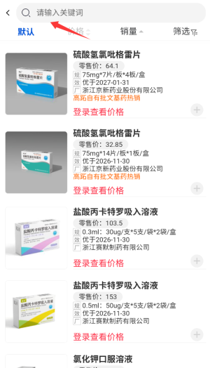 2、搜索药品时,使用"扫条形码"功能可快速获取药品详情。