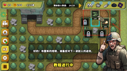 3、合理搭配不同的炮塔与英雄角色,根据地形特点及敌方行动制定最佳防御策略,有效阻挡敌人进攻路线。