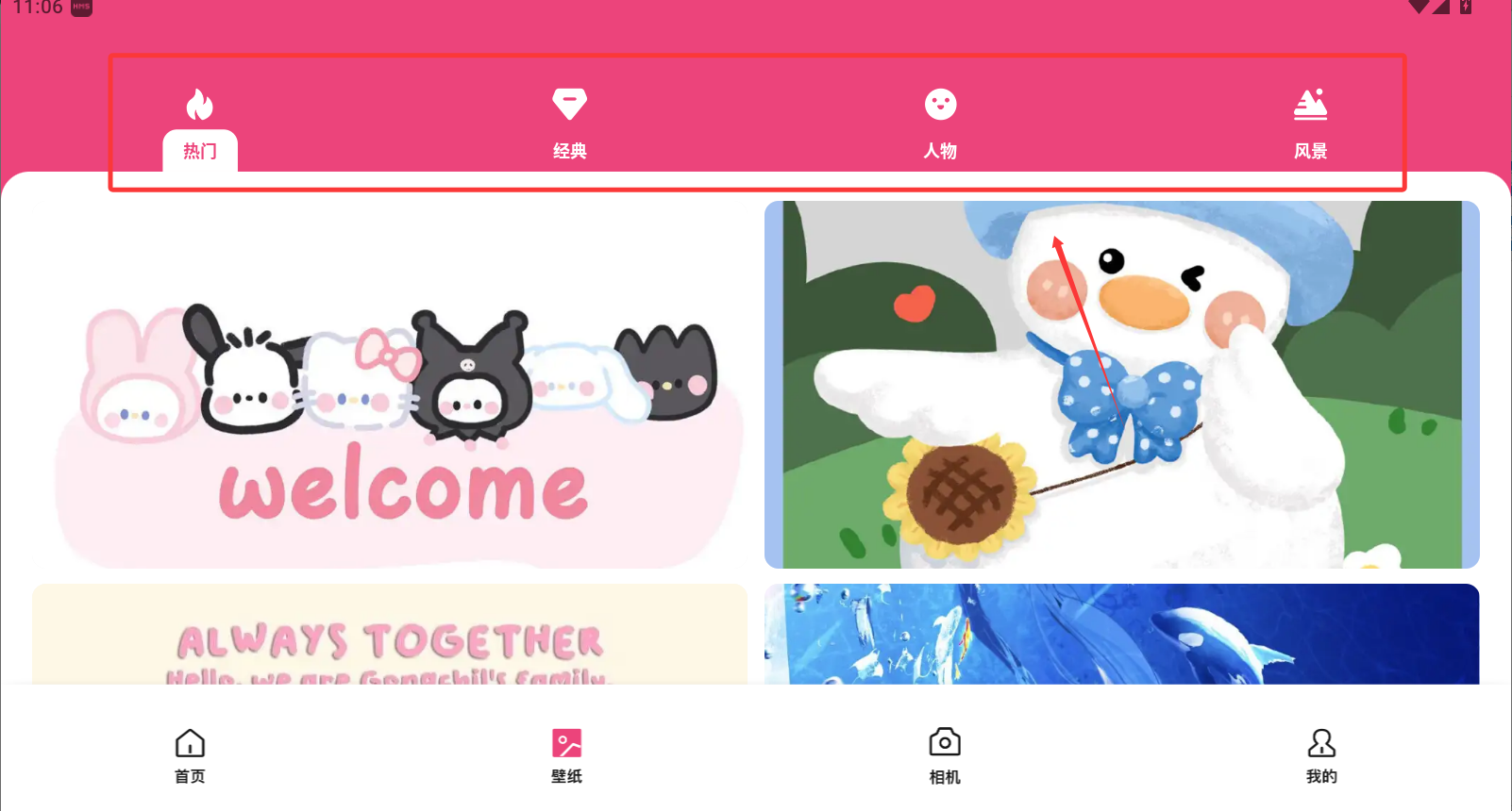 3、个性化壁纸中心提供超10万张高清动态与静态壁纸,支持按角色,作品,色系分类检索,适配各类手机屏幕分辨率与尺寸。