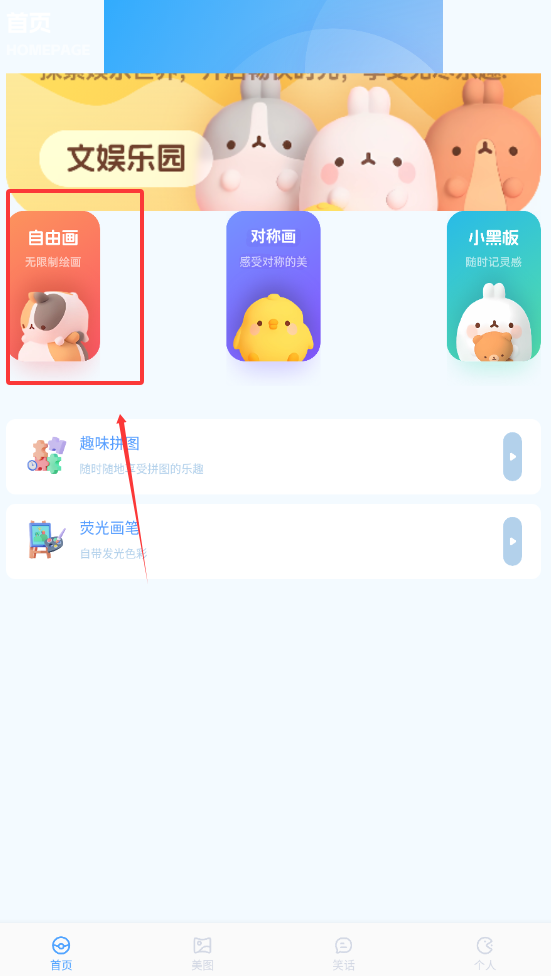 1、进入首页,按照选项选择自己需要的图画,点击进入即可。