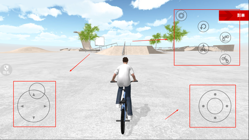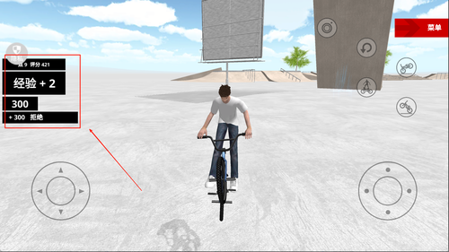 2、左边是移动摇杆,右边是各种特技动作,左侧会显示特技得分信息信息。