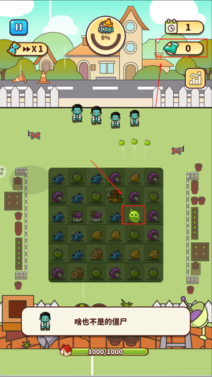 2、玩家需要移动植物,将相同的植物合成为更高级的植物,来抵御僵尸的进攻。