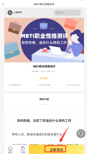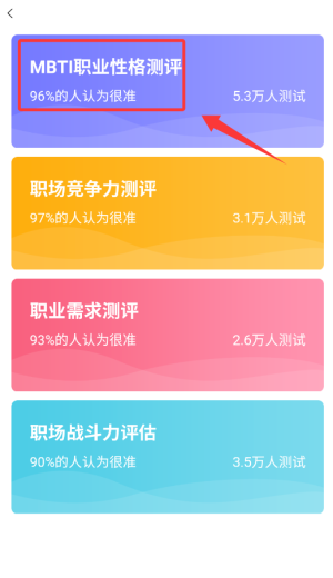 2、找到"MBTI性格测试"功能,点击进入测评说明页面。