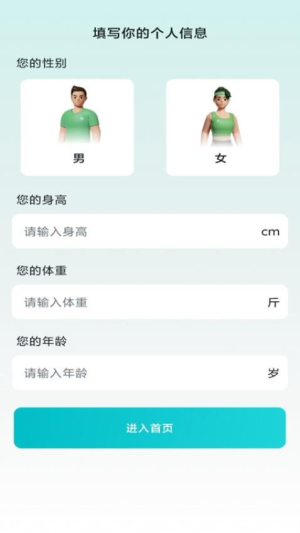 1、首次使用需填写身高、年龄等基础信息,建立个人健康档案。