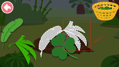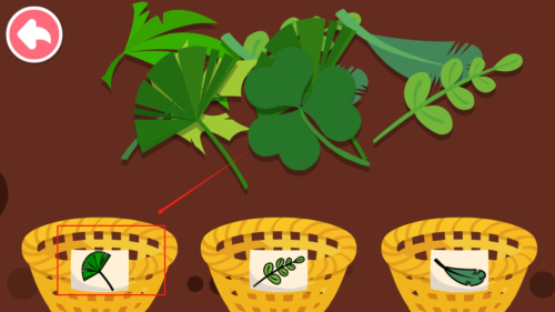 2、根据屏幕上的提示,将叶子放入竹筐中,完成这一简单的操作任务。