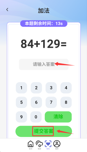 3、根据屏幕显示的加法题目,输入正确答案完成挑战获取奖励