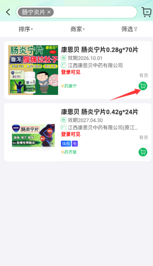 3、选择目标药品后,点击"加入购物车"按钮进行结算购买。