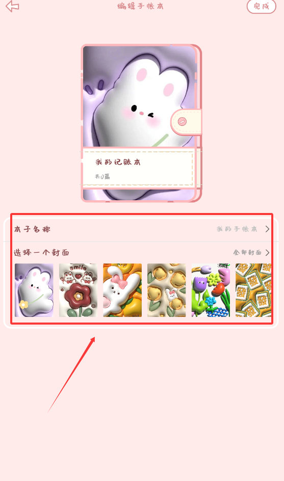 2、进入编辑手账本,可以选择封面。点击喜欢的封面,加入图中即可。