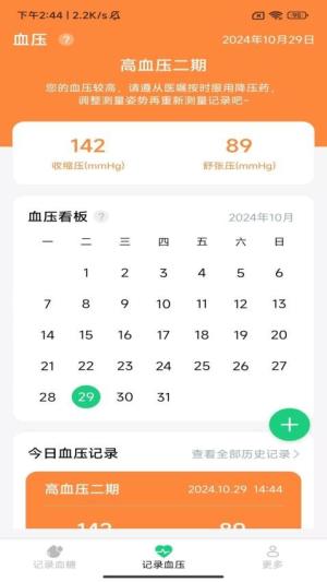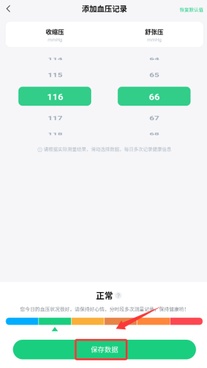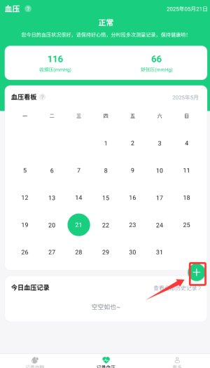 2、点击右上角"+"图标,进入血压数值录入界面。