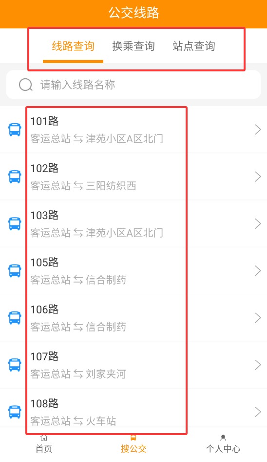 2、进入之后,会有公交线路,选择自己想要查询的线路或者换乘、站点等。
