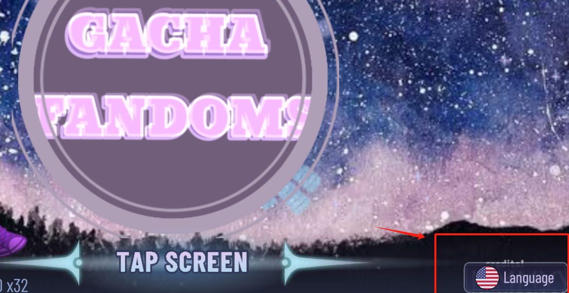 1、背景是星空,右上角有月亮。中间写着GACHA FANDOM,点左下角或右下角按钮就能开始游戏,还能选语言。