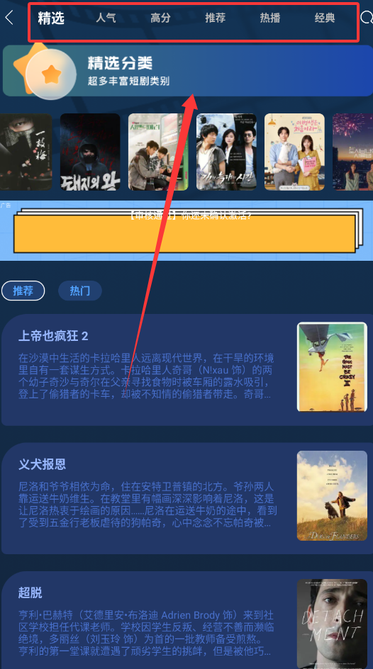 2、进入近期推荐后,按照选项选择影片,点击进入即可。