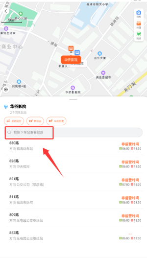 2、输入线路编号或站点名称,系统将自动显示相关公交线路及实时到站信息。