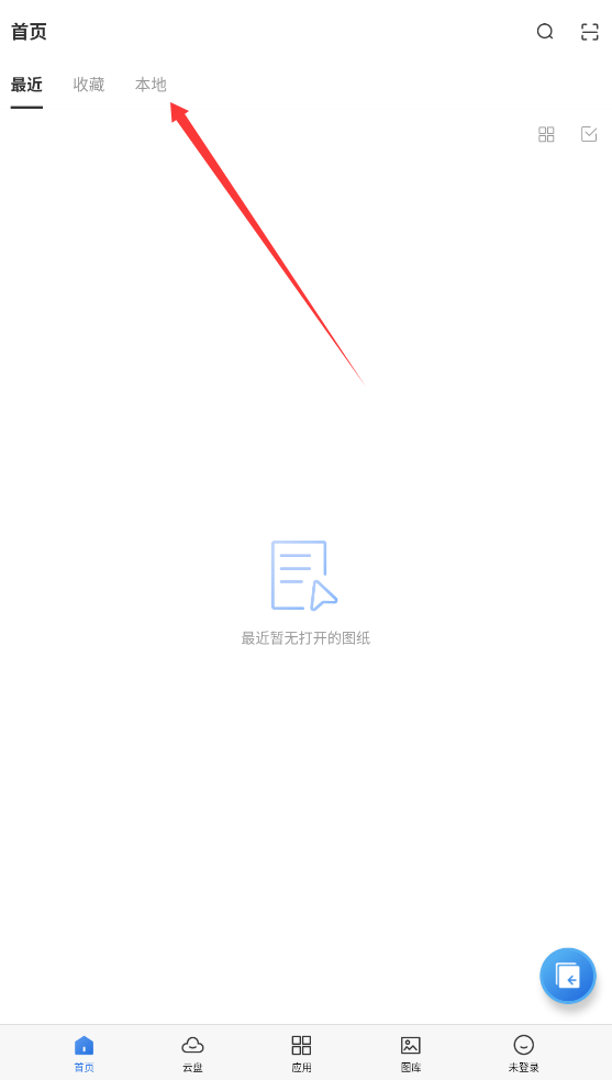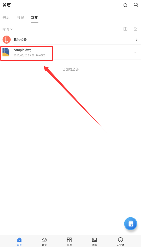 1、启动CAD迷你看图APP后,在首页点击"本地文件"选项,进入手机存储目录查找图纸文件。