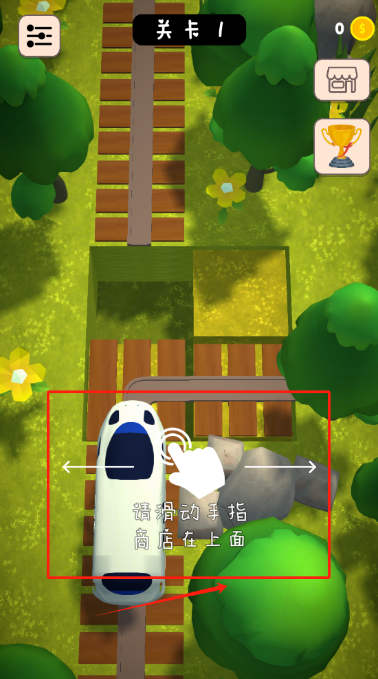 1、点击屏幕滑动手指控制白色小车前进,注意商店在画面顶部位置。