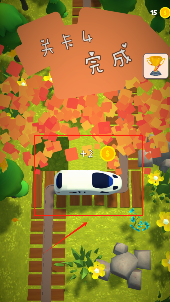 3、关卡4完成后获得金币奖励,点击图标查看具体得分和收集情况。