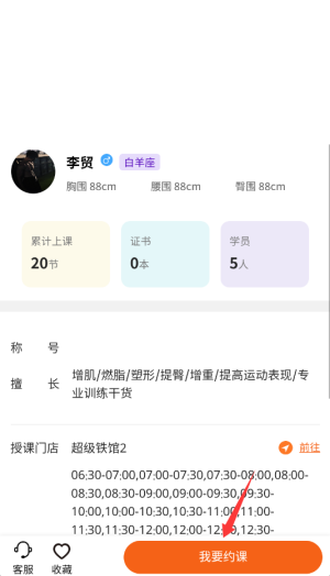 3、确认课程时间和内容后,点击页面底部"约课"完成课程预定。